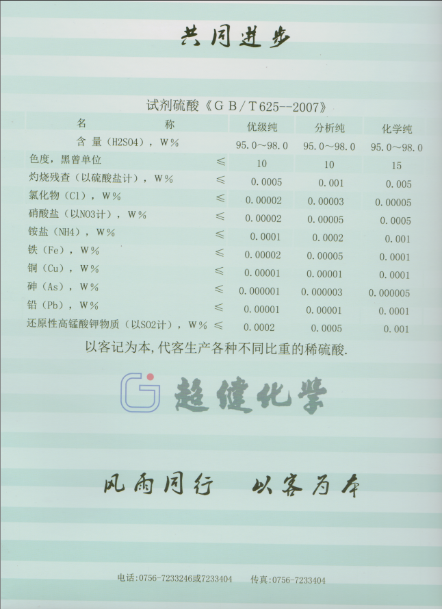試劑(ji)硫酸産(chǎn)品标準(zhǔn)