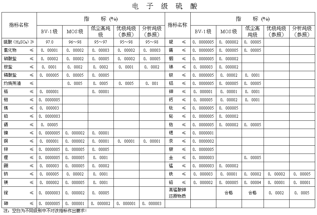電子級(ji)硫酸産(chan)品标準(zhun)