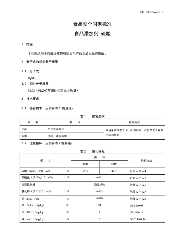 食品級(jí)硫酸産(chan)品标準(zhǔn)